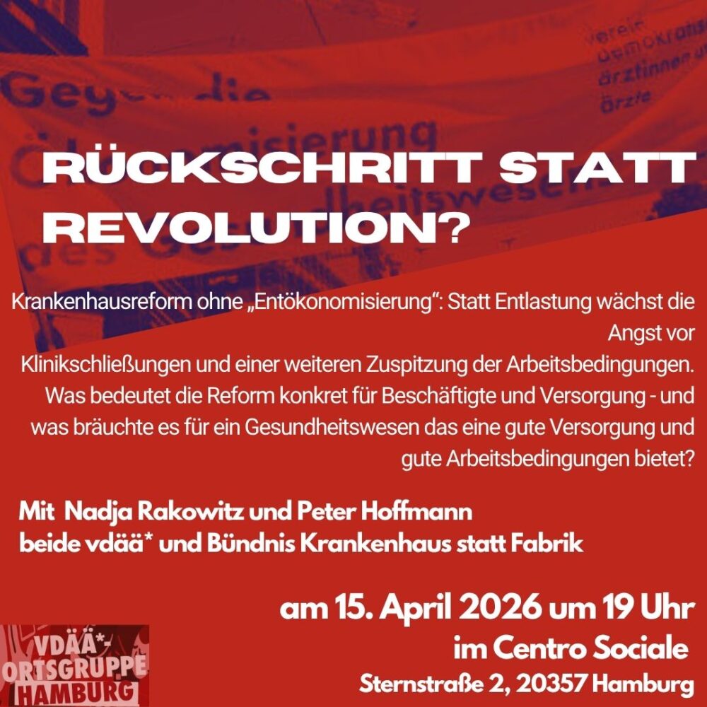 Ende 2024 versprach Gesundheitsminister Lauterbach mit der Krankenhausreform die „dramatische Entökonomisierung“ der Krankenhäuser und Verbesserung der Gesundheitsversorgung. In einem zähen, nervenaufreibenden und komplizierten Prozess beschloss die Ampel 2024 die Krankenhausreform. Dieses Jahr wurde dann eine „praxisnahe Weiterentwicklung“ der Reform als neues Krankenhausgesetz beschlossen. Für die Beschäftigten des Gesundheitswesens ist unklar, welche Auswirkungen konkret auf sie […]